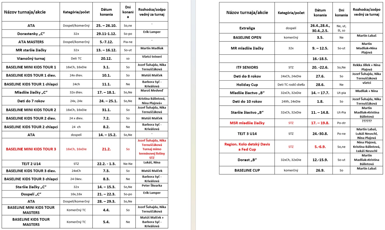 Tenisové turnaje/akcie pre sezónu 2025/2026
